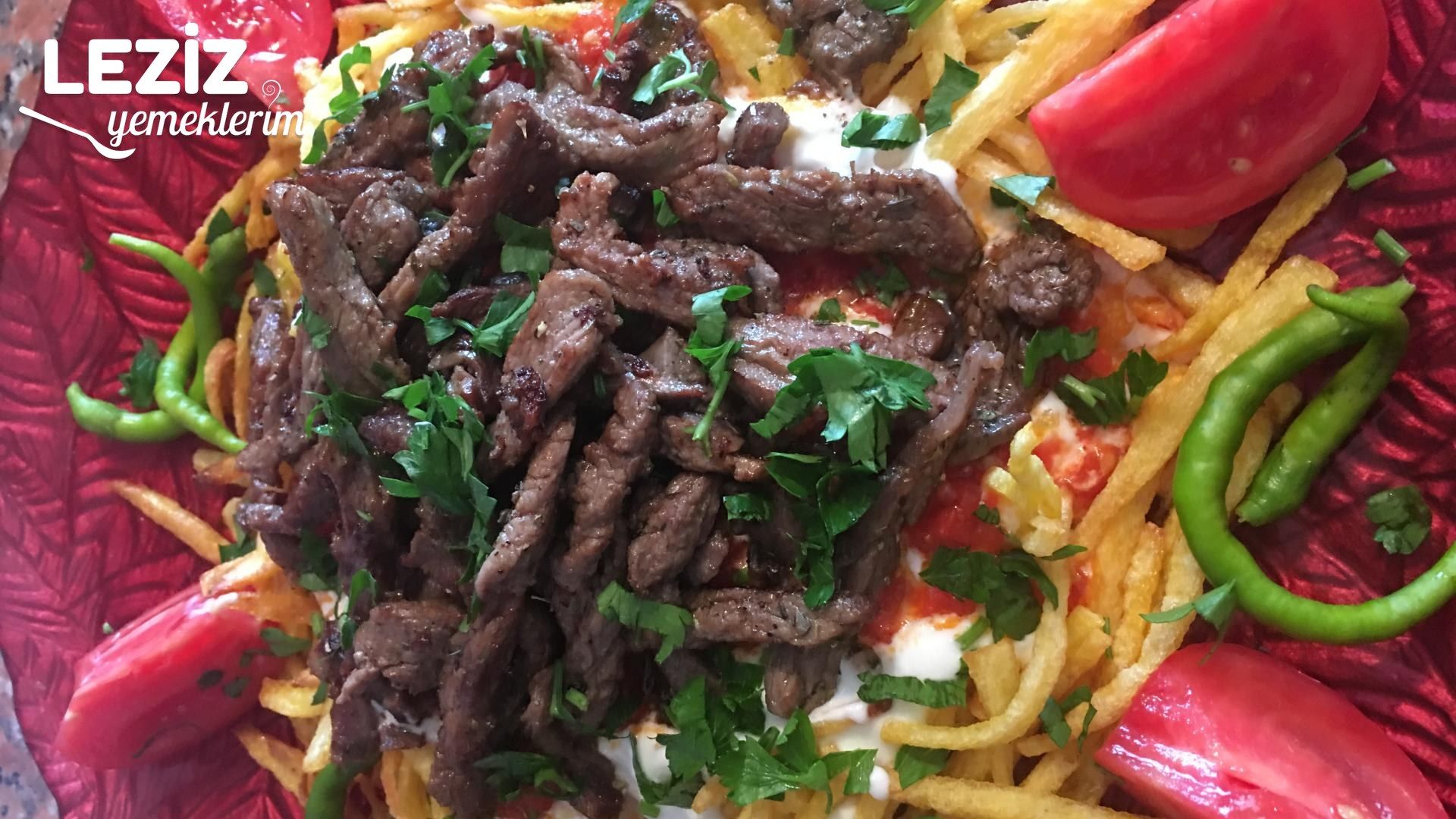 Servis tabağına önce kızarmış patatesleri alıyoruz.