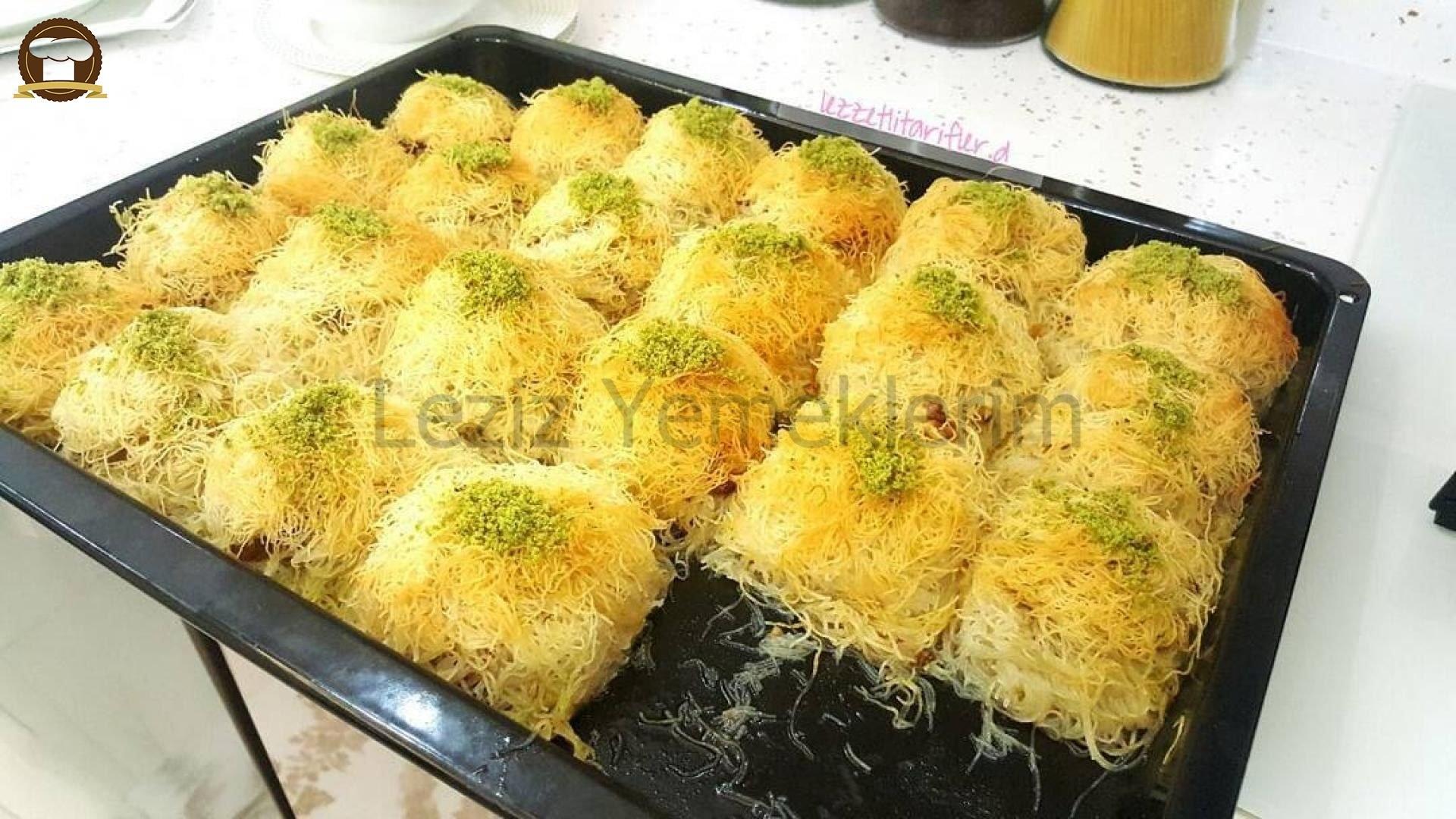 Kadayıfları elimizle parçalayıp (ben 4'e böldüm) bir kaba koyuyoruz.